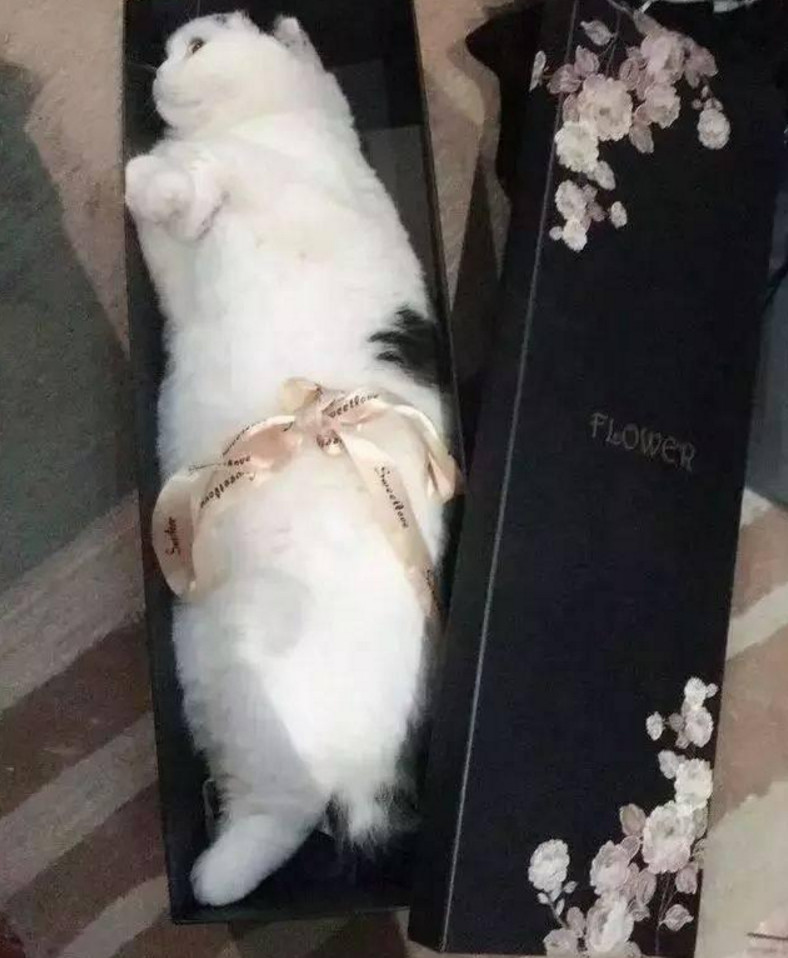 为抱美人归 男子将猫主子装礼盒里当礼物 猫猫小